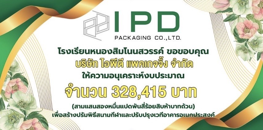 IPD Packaging Co., Ltd., led by Dr. Nataraj Poonsupmanee, Managing Director, and Ms. Sandee Poonsapmanee, Deputy Managing Director, has donated 328,415 THB to Nong Sim Non Sawan School. This contribution will support the construction of a new sports ceremony stage and the renovation of the multi-purpose building’s main stage.