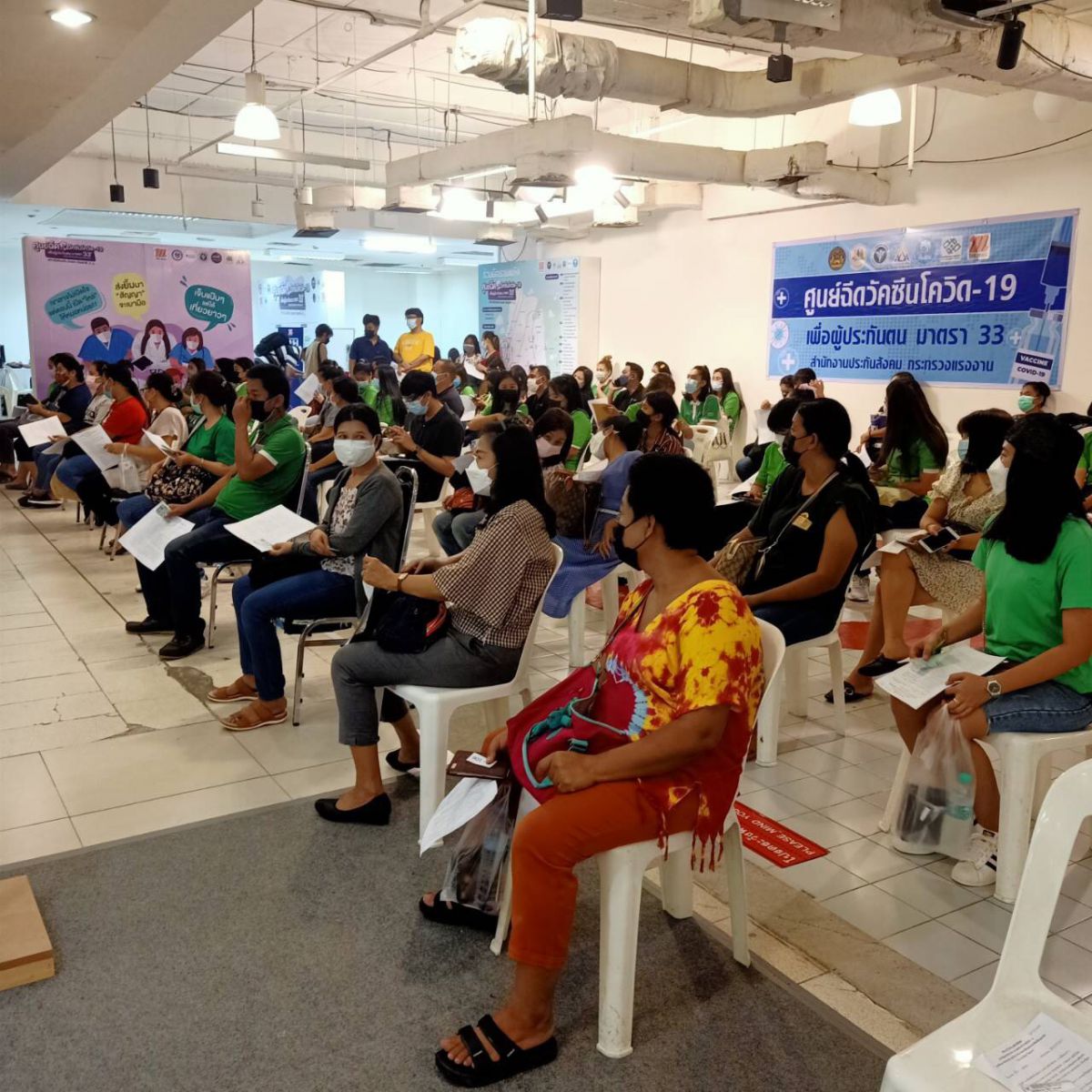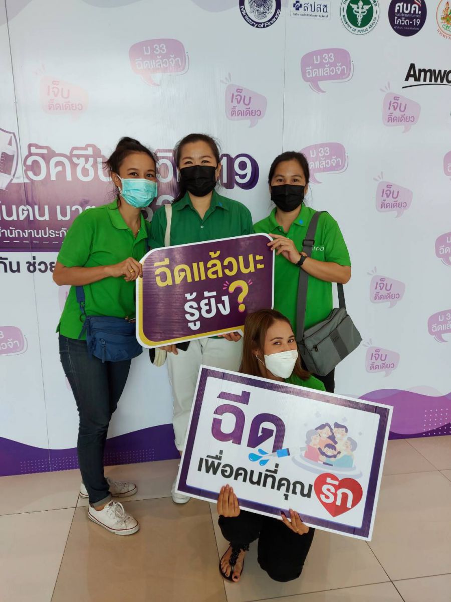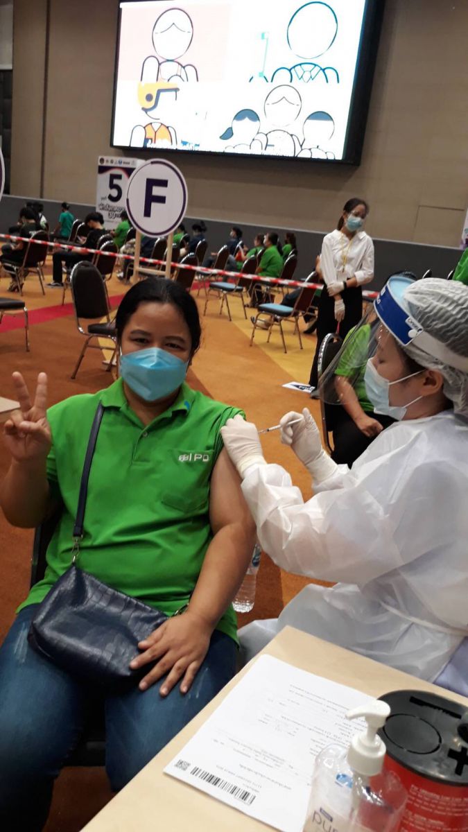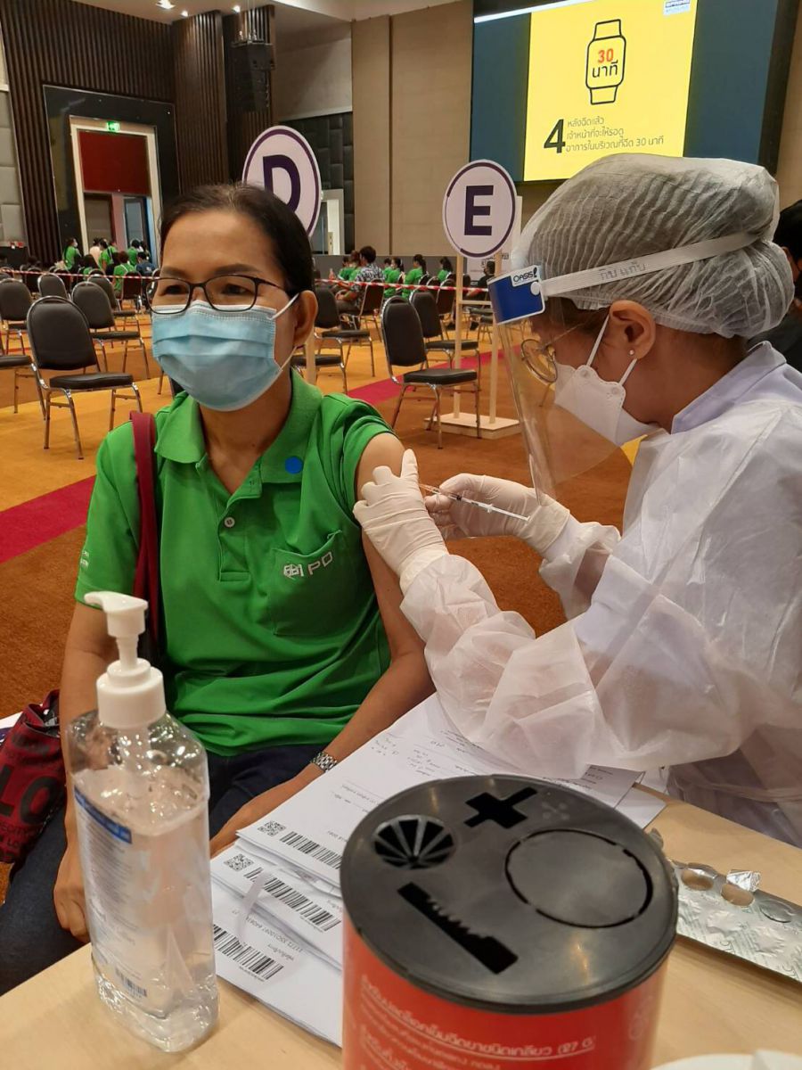 ภาพบรรยากาศการเข้ารับบริการฉีดวัคซีน Covid-19 (เข็มที่ 1) เมื่อวันศุกร์ที่ 18 มิถุนายน 2564 โดยมี ดร.ณัฐเศรษฐ์ พูนทรัพย์มณี และคุณแสนดี พูนทรัพย์มณี ผู้บริหารบริษัทฯ มาร่วมให้กำลังใจพนักงาน ณ จุดรับบริการฉีดวัคซีน COVID-19 ทั้ง 4 จุด